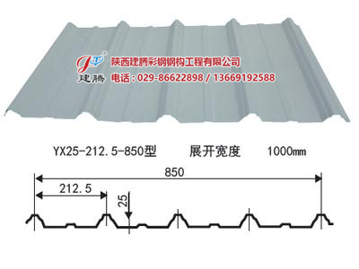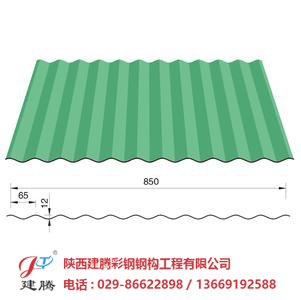 YX12-65-850型鋼板是在連續(xù)機(jī)組上以厚度一般在1.5mm以下的冷軋卷板、鍍鋅/鍍鋁鋅卷板為基板,經(jīng)過表面預(yù)處理(脫脂和化學(xué)處理),用輥涂的方法,涂上一層或多層液態(tài)涂料,后經(jīng)過烘烤和冷卻的板材。